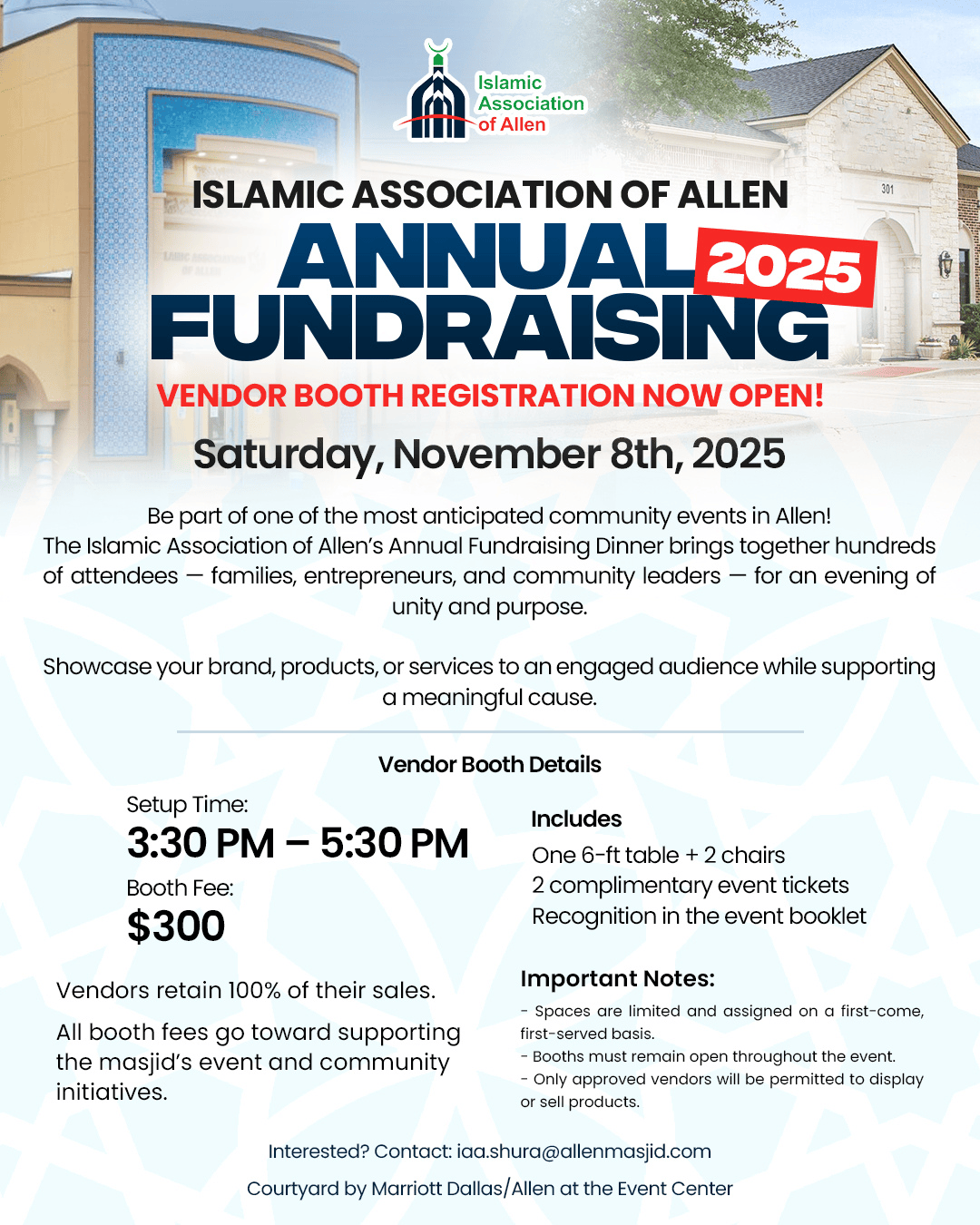 By registering , you acknowledge that you will follow all the instructions provided to you by the Masjid for your and other community member's safety. You also acknowledge that once the payment is made no refunds will be allowed.